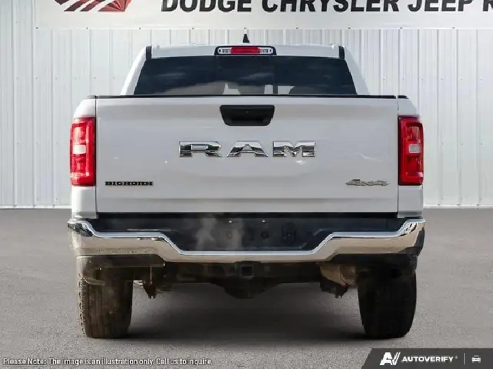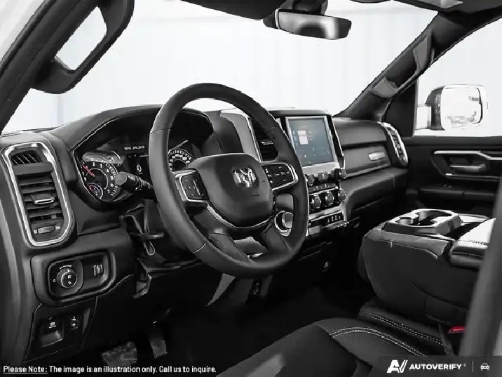 QUICK ORDER PACKAGE 23Z BIG HORN -inc: Engine: 3.6L Pentastar VVT V6 w/eTorque, Transmission: 8-Speed Automatic (DFT) , TRANSMISSION: 8-SPEED AUTOMATIC (DFT) (STD), REAR WHEELHOUSE LINERS, NIGHT EDITION -inc: Tires: 275/55R20 OWL All-Season, Accent-Colour Premium Power Mirrors, Black Headlamp Bezels, Black Mesh Grille w/Black Surround, Wheels: 20 x 9 Aluminum Painted Clad, Black Exterior Badging, Anti-Spin Differential Rear Axle, Accent Colour Door Handles, Accent Colour Tailgate Handle, Black Dual Exhaust Tips, Black Interior Accents, Body-Colour Front Bumper, Body-Colour Rear Bumper w/Step Pads, Black Tail Lamp Bezels, Black Painted Exterior Mirror Caps, Black RAM Grille Badge, ENGINE: 3.6L PENTASTAR VVT V6 W/ETORQUE (STD), BRIGHT WHITE, BIG HORN LEVEL 1 EQUIPMENT GROUP -inc: 6-Month SiriusXM Radio Service, For More Info, Call 888-539-7474, SiriusXM Satellite Radio, 400W Inverter, Rear Window Defroster, Secondary Active Grille Shutters, Auto-Dimming Rearview Mirror, Power Adjustable Pedals, Leather Wrapped Steering Wheel, Rear Power Sliding Window, Rear Dome Lamp w/On/Off Switch, Steering Wheel-Mounted Audio Controls, Glove Box Lamp, Body-Colour Fender Flares, 115V Auxiliary Power Outlet, Universal Garage Door Opener, Front Heated Seats, Heated Steering Wheel, 2nd Row In-Floor Storage Bins, Sun Visors w/Illuminated Vanity Mirrors, Big Horn Instrument Panel Badge, Wheels: 18 x 8 Aluminum, Voice Recorder, Vinyl Door Trim Insert.