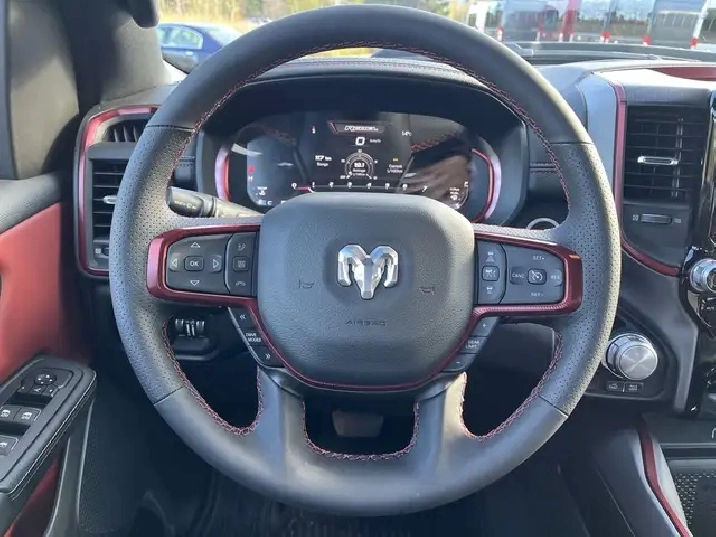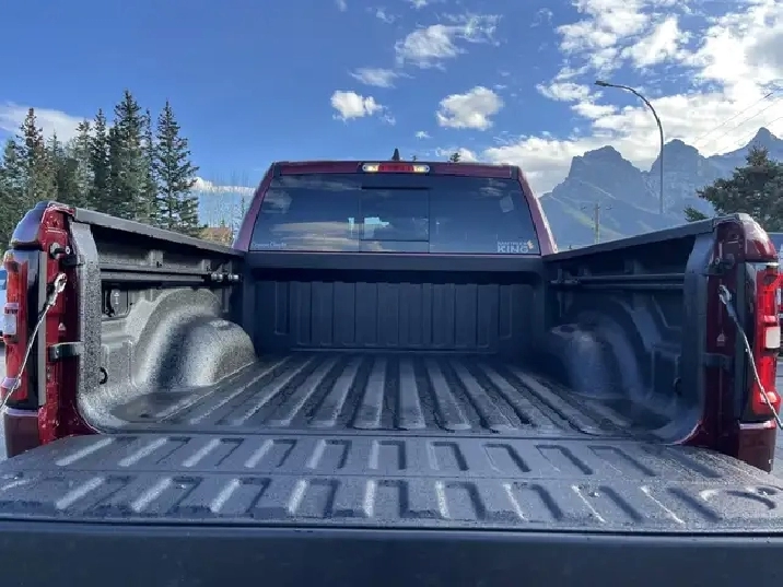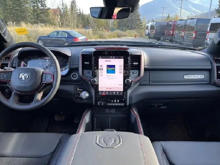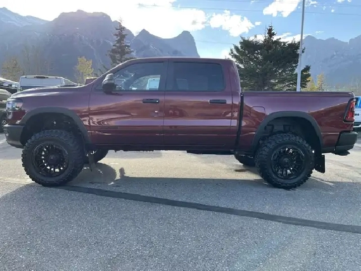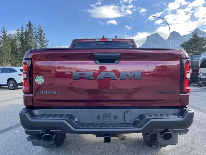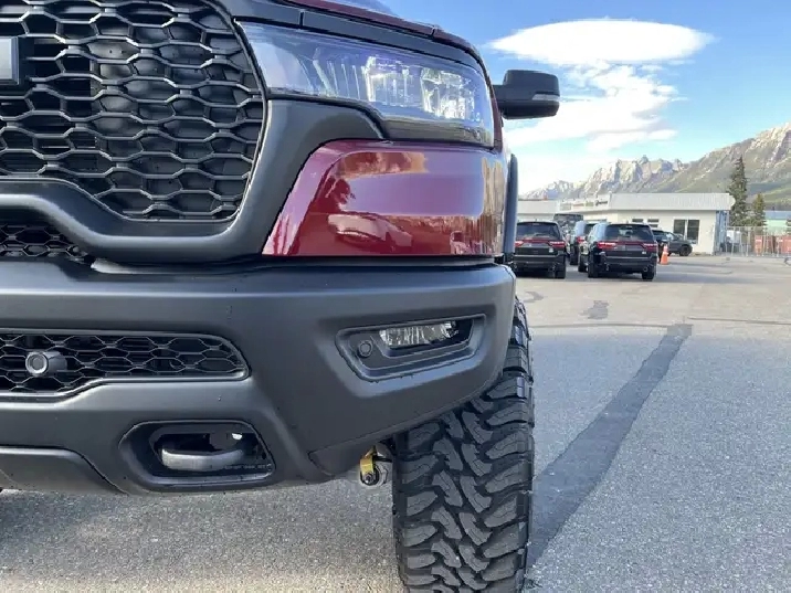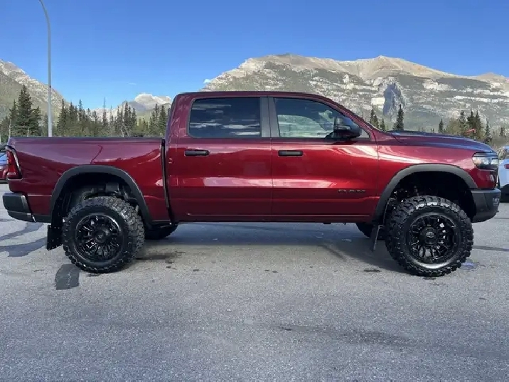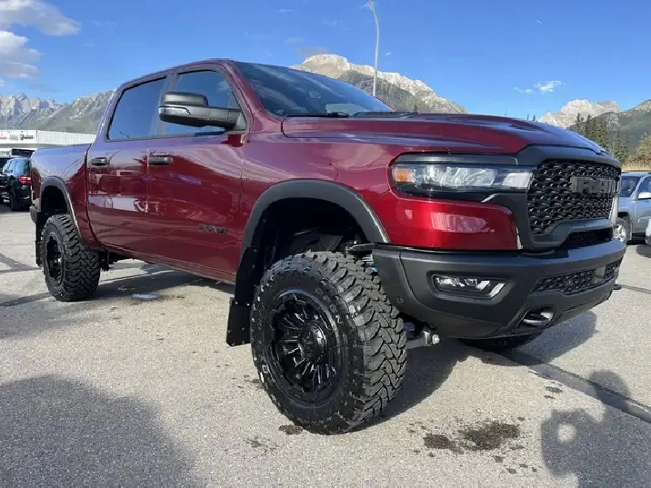 Introducing the 2026 Ram 1500 REBEL, a rugged beast with a heart of elegance that stands out in its stunning Delmonico Red Pearl Coat. Specifically designed for those with a passion for both adventure and sophistication, this 4x4 Crew Cab with a 5'7" Box is the ultimate expression of power and luxury in the truck world. Dont let its beauty fool you this truck is ready to tackle any terrain with its part and full-time Four-Wheel Drive system, ensuring that you remain in control regardless of the conditions underfoot. Boasting a robust 3.0-liter 6-cylinder engine, the Ram REBEL delivers an impressive 43 kilometers on the speedometer with a fuel economy that is modest considering its ample capabilities 13 KM/L in the city and 9 KM/L on the highway.One step inside the cabin reveals an opulent haven with 10 Alpine Speakers and 2 LCD Monitors, providing a rich sound experience as you enjoy the practicality of multiple power outlets, including 12V DC and a handy 120V AC for powering your devices. Stay connected and navigate with ease using features like Google Android Auto, Apple CarPlay, and an integrated navigation system with voice activation, while enjoying the convenience of hands-free phone communication. The REBEL takes safety seriously, equipped with an ensemble of features including Forward Collision Warning-Plus, Lane Departure Warning, Lane Keeping Assist, Adaptive Cruise Control, and Blind Spot Detection. With the comfort of heated leather seats, a leather steering wheel, and dual-zone automatic air conditioning, every journey promises to be a memorable one.Designed with a tough exterior that includes 3 skid plates and a Class IV towing package, the REBEL isnt just for show it works hard too. Bilstein shock absorbers and an off-road suspension ensure a smooth ride even when the path gets tough, proving once again that the 2026 Ram 1500 REBEL is the perfect combination of brawn and beauty for any adventure you seek.We'd love to see you sit in this vehicle and take it for a test drive. Stop by Canmore Chrysler Dodge Jeep Ram located at 101 Bow Valley Trail in Canmore, Alberta to see it in person! AMVIC Licensed Business