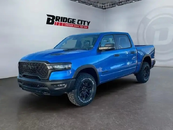 WAS: $80135 NOW: $75362 plus taxes and licensing feesOff-Road Suspension, Navigation, Apple CarPlay, Android Auto, 360 Camera! Experience the perfect balance of power and luxury in the 2026 Ram 1500, built to handle every job with style. The Ram 1500's unmatched luxury transcends traditional pickups without compromising its capability. Loaded with best-in-class features, it's easy to see why the Ram 1500 is so popular. With the most towing and hauling capability in a Ram 1500, as well as improved efficiency and exceptional capability, this truck has the grit to take on any task. This hydro blue pearl Crew Cab 4X4 pickup has an automatic transmission and is powered by a 420HP 3.0L Straight 6 Cylinder Engine. Our 1500's trim level is Rebel. This Ram 1500 in the Rebel trim offers off-roading suspension with Bilstein dampers, and rewards you with a leather-wrapped heated steering wheel, a 360 camera system, a 10-speaker Alpine audio, and a 12-inch infotainment screen with inbuilt navigation, Apple CarPlay and Android Auto, and 4G LTE Wi-Fi hotspot. Additional features include class IV towing equipment, black off-road wheels with black fender flares, power adjustable pedals, intersection collision assist, evasion assist, lane keep assist with lane departure warning, and even more! This vehicle has been upgraded with the following features: Off-road Suspension, Navigation, Apple Carplay, Android Auto, 360 Camera, Heated Steering Wheel, Adaptive Cruise Control. To apply right now for financing use this link : https://www.bridgecitychrysler.com/pre-approval/ As a premier Chrysler, Dodge, Jeep and RAM dealership, Bridge City Chrysler proudly offers an extensive selection of new and used vehicles to meet every driver’s needs. Customers across Lethbridge, Fort Macleod, Taber, Claresholm, Coaldale, and beyond trust us for daily vehicle specials, certified service and parts, and a seamless online inventory experience. With competitive financing options and expert support, we make car buying easy and enjoyable. Ready to hit the road? Schedule your test drive today at Bridge City Chrysler, your trusted Chrysler, Dodge, Jeep and RAM dealer in Lethbridge, Alberta. Vehicle pricing offer shown expire 2025-11-30. Come by and check out our fleet of 100 used cars and trucks and 140 new cars and trucks for sale in Lethbridge. o~o