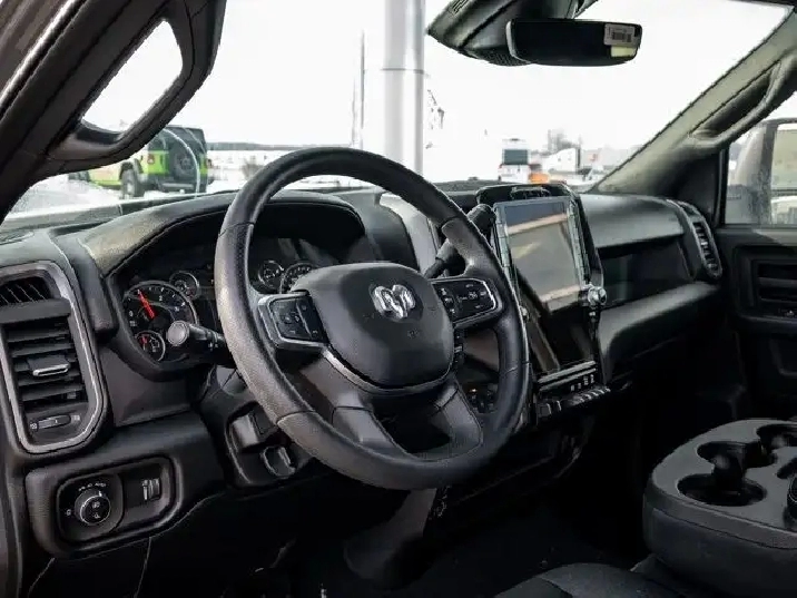 - TRADESMAN LEVEL 1 EQUIPMENT GROUP -inc: Convenience Group Radio: Uconnect 5 Nav w/12.0 Display Auto-Dimming Rearview Mirror Rear Power Sliding Window Emergency Vehicle Alert System (EVAS) 12 Touchscreen Display Tinted Acoustic Windshield GPS Navigation 4G LTE Wi-Fi Hot Spot SiriusXM w/360L On-Demand Content Connected Travel & Traffic Services Mirror Running Lights 115-Volt Auxiliary Power Outlet - Exterior Alexa Built-In Off-Road Information Pages Trailer Tow Pages 400-Watt Inverter Disassociated Touchscreen Display HD Radio A/C w/Dual-Zone Auto Temp Control 115-Volt Auxiliary Power Outlet - Front Front & Rear Floor Mats Park-Sense Front & Rear Park Assist,BLACK CLOTH FRONT 40/20/40 BENCH SEAT,TRANSMISSION: 8-SPEED TORQUEFLITE AUTOMATIC,REAR WHEELHOUSE LINERS,CLEARANCE LAMPS,5TH WHEEL/GOOSENECK TOWING PREP GROUP,MOPAR BLACK TUBULAR SIDE STEPS,ENGINE: 6.7L CUMMINS I-6 HO TURBO DIESEL -inc: Selective Catalytic Reduction (Urea) Dual 730-Amp Maintenance-Free Batteries Cummins Turbo Diesel Badge Heavy-Duty Engine Cooling Diesel Exhaust Brake Supplemental Heater 3.42 Axle Ratio Front Bumper Sight Shields Capless Fuel-Filler GVWR: 5 007 kgs (11 040 lbs) MOPAR Winter Front Grille Cover,CERAMIC GREY,3.42 AXLE RATIO,QUICK ORDER PACKAGE 24B WARLOCK -inc: Engine: 6.7L Cummins I-6 HO Turbo Diesel Transmission: 8-Speed TorqueFlite Automatic Forward & Reverse Utility Lights Power Heated Folding Telescopic Mirrors Exterior Mirrors w/Turn Signals Exterior Mirrors w/Courtesy Lamps Auto Power Folding Mirrors Rear Performance-Tuned Shocks Front Performance-Tuned Shocks Heated Exterior Mirrors Mirror Running Lights Warlock Decal Power Adjust Mirrors Black Wheel Flares Power Telescoping Mirrors Carpet Floor Covering Hill Descent Control Power Convex Aux Exterior Mirrors,RADIO: UCONNECT 5 NAV W/12.0 DISPLAY,GVWR: 5 007 KGS (11 040 LBS),Tow Hitch,ABS,Four Wheel Drive,Locking/Limited Slip Differential,Power Steering,4-Wheel Disc Brakes,Brake Assist,Privacy Glass,Intermittent Wipers,AM/FM Stereo,Conventional Spare Tire,Tow Hooks,Fog Lamps,Daytime Running Lights,Bluetooth Connection,LED Headlights,Tires - Front All-Terrain,Aluminum Wheels,Rear Defrost,Variable Speed Intermittent Wipers,Tires - Rear All-Terrain,Automatic Headlights,Power Door Locks,Satellite Radio,Requires Subscription,Traction Control,Auxiliary Audio Input,MP3 Capability,Back-Up Camera,Split Bench Seat,A/C,Satellite Radio,Driver Air Bag,Passenger Air Bag,Immobilizer,Smart Device Integration,Power Windows,Requires Subscription,Cruise Control,Front Collision Mitigation,Traction Control,Bluetooth Connection,Rear Bench Seat,Child Safety Locks,Keyless Start,Power Windows,Front Side Air Bag,Stability Control,Passenger Air Bag Sensor,Keyless Entry,Smart Device Integration,WiFi Hotspot,Front Head Air Bag,Rear Head Air Bag,Floor Mats,Power Door Locks,Passenger Vanity Mirror,Tire Pressure Monitor,Adjustable Steering Wheel,Adaptive Cruise Control,Power Door Locks