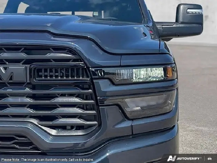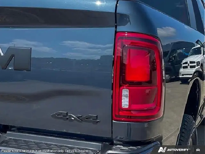 - REMOTE START SYSTEM,TIRES: LT285/60R20E OWL ON/OFF-ROAD,IP-MOUNTED AUXILIARY SWITCHES -inc: Dash Pass Thru Wire Circuits,TRANSMISSION: 8-SPEED TORQUEFLITE AUTOMATIC -inc: 12 Single-Wheel Rear Axle,WHEELS: 20 X 8 BLACK ALUMINUM,NIGHT EDITION -inc: Gloss Black Nostrils/Black Grille Tires: LT285/60R20E OWL On/Off-Road Black Exterior Badging Wheels: 20 x 8 Black Aluminum Body-Colour Grille Surround Black Interior Accents Black Wheel Centre Hub Body-Colour Front Bumper Painted Rear Bumper,REAR WHEELHOUSE LINERS,DELETE DEPLOYABLE BED STEP,TRAILER CAMERA WIRING (NO CAMERA),CLEARANCE LAMPS,FORGED BLUE METALLIC,BLIND-SPOT/CROSS-PATH -inc: LED Taillamps Red Taillamp Bezels,GVWR: 5 352 KG (11 800 LBS),5TH WHEEL/GOOSENECK TOWING PREP GROUP,BLACK PREMIUM CLOTH FRONT BUCKET SEATS -inc: Bucket Seats Fold-Flat Load Floor w/Storage Power 8-Way Adjustable Driver Seat Rear 60/40 Split-Folding Bench Seat Front Seatback Map Pockets Power 2-Way Driver Lumbar Adjust Full-Length Upgraded Floor Console,ENGINE: 6.7L CUMMINS I-6 HO TURBO DIESEL -inc: Selective Catalytic Reduction (Urea) Dual 730-Amp Maintenance-Free Batteries Cummins Turbo Diesel Badge Heavy-Duty Engine Cooling Supplemental Heater 3.42 Axle Ratio MOPAR Winter Front Grille Cover GVWR: 5 352 kg (11 800 lbs) Current Generation Engine Controller Diesel Exhaust Brake Front Bumper Sight Shields Capless Fuel-Filler,QUICK ORDER PACKAGE 24Z -inc: Engine: 6.7L Cummins I-6 HO Turbo Diesel Transmission: 8-Speed TorqueFlite Automatic,BIG HORN LEVEL 2 PLUS EQUIPMENT GROUP -inc: Surround View Camera System Blind-Spot/Cross-Path LED Taillamps Red Taillamp Bezels Power Adjustable Pedals Emergency Vehicle Alert System (EVAS) 12 Touchscreen Display Glove Box Lamp Auto Power Folding Mirrors Footwell Courtesy Lamp 115-Volt Auxiliary Power Outlet - Rear Media Hub w/2 USB Charging Ports Drowsy Driver Detection Front Heated Seats MOPAR Deployable Bed Step 115V Auxiliary Power Outlet - Exterior Alexa Built-In Active Lane Management System Forward & Reverse Utility Lights Locking Lower Glove Box Remote Start System 9 Alpine Speakers w/Subwoofer Disassociated Touchscreen Display Dual Wireless Charging Pad Trailer Tire Pressure Monitoring Dual Glove Boxes 115-Volt Auxiliary Power Outlet - Front Universal Garage Door Opener Second Row In-Floor Storage Bins Sun Visors w/Illuminated Vanity Mirrors Radio: Uconnect 5 Nav w/12.0 Display Centre Stop Lamp w/Cargo Camera Rain-Sensing Windshield Wipers A,3.42 AXLE RATIO,RADIO: UCONNECT 5 NAV W/12.0 DISPLAY,Tow Hitch,Four Wheel Drive,Integrated Turn Signal Mirrors,Power Mirror(s),Daytime Running Lights,Brake Assist,Automatic Headlights,Heated Mirrors,AM/FM Stereo,Bluetooth Connection,Rear Defrost,Power Steering,Power Door Locks,Variable Speed Intermittent Wipers,Locking/Limited Slip Differential,Tow Hooks,Aluminum Wheels,4-Wheel Disc Brakes,Fog Lamps,Intermittent Wipers,Conventional Spare Tire,ABS,Privacy Glass,LED Headlights,Satellite Radio,Requires Subscription,Satellite Radio,MP3 Capability,Auxiliary Audio Input,Requires Subscription,Keyless Start,Trip Computer,Adaptive Cruise Control,Keyless Entry,Power Windows,Cruise Control,Rear Bench Seat,A/C,Adjustable Steering Wheel,Power Door Locks,Passenger Air Bag Sensor,Immobilizer,Driver Air Bag,Traction Control,Front Collision Mitigation,Split Bench Seat,Bluetooth Connection,Smart Device Integration,Stability Control,Front Head Air Bag,Back-Up Camera,WiFi Hotspot,Split Bench Seat,Passenger Air Bag,Power Door Locks,Smart Device Integration,Rear Head Air Bag,Trip Computer,Passenger Illuminated Visor Mirror,Cloth Seats,Rear Parking Aid,Floor Mats,Traction Control,Front Side Air Bag,MP3 Capability,Passenger Vanity Mirror,Tire Pressure Monitor,Power Windows,Child Safety Locks