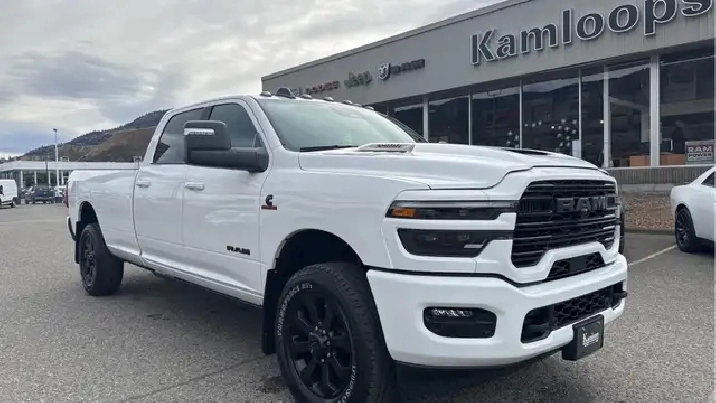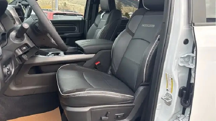 Our 3500's trim level is Laramie. This trim rewards you with heated front seats with lumbar support, a heated steering wheel and remote engine start. Also standard include class V tow equipment with a hitch, brake controller and trailer sway control, heated power-adjustable and power-extendable trailer style mirrors, heavy duty suspension, 4G LTE mobile hotspot internet access, adaptive cruise control, a 10-speaker Alpine audio system, and an upgraded 12-inch infotainment screen powered by Uconnect 5, with inbuilt navigation, Apple CarPlay and Android Auto. Safety features also include blind spot and cross path detection, ParkSense front and rear parking sensors, forward collision warning and front collision mitigation. This vehicle has been upgraded with the following features: Navigation, Heated Seats, Blind Spot Detection, Remote Start, Heated Steering Wheel, Power Mirrors, ParkSense.