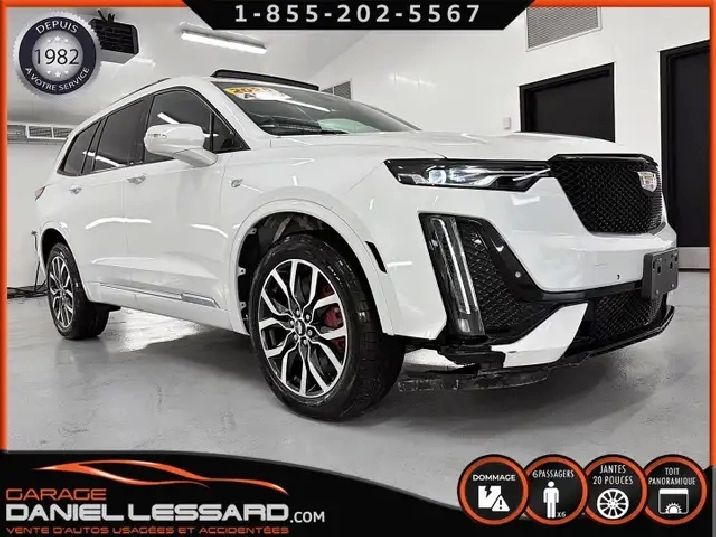 SPORT, AWD 3.6 L V-6, BUCKETSEATS, TOIT PANO, MAGS 20P, BANCS VENTILÉ CHAUFFANT, SON BOSE, BAS KM VEHICULE CANADIEN VGA LÉGÈREMENT ACCIDENTÉ (VALEUR A NEUF) VOIR PLUS DE PHOTOS ET DETAILS AU WWW.DANIELLESSARD.COM, VIDEO EGALEMENT DISPONIBLE DANS L'ANNONCE TRES BEAU VUS HAUTE GAMME FULL ÉQUIPÉ, TRES BAS KM, VEHICULE CANADIEN INSCRIT VGA SUR L'IMMATRICULATION VENDU TEL QUEL ACCIDENTÉ, EN MARCHE RUN AND DRIVE, TRES BEAU PROJET A REPARER ! REPARATION AU FRAIS DU CLIENT ! CONTACTEZ-NOUS POUR PLUS D'INFOS OU POUR PRENDRE RENDEZ-VOUS, ÉCONOMISEZ GROS AVEC CE TRES BEAU VEHICULE UTILITAIRE SPORT. DISPONIBLE DÈS MAINTENANT !!! MAGNIFIQUE CADILLAC XT6 2025 COULEUR BLANC PERLE AVEC SEULEMENT 5726 KM AU COMPTEUR ! MOTEUR 3.6 LITRES V-6, TRACTION INTEGRALE, TRANSMISSION AUTOMATIQUE AVEC PADSHIFT AU VOLANT, BUCKETSEATS BANCS CAPITAINES DONC 6 PLACES, INTERIEUR EN CUIR AVEC FINITION HAUTE GAMME, BANCS AVANT CHAUFFANT ET VENTILÉ, BANC ARRIERE CHAUFFANT, VOLANT CHAUFFANT, GRAND TOIT OUVRANT PANORAMIQUE, SYSTEME DE SON * BOSE * HAUTE GAMME, AFFICHAGE SUR GRANDE ECRAN DE BORD TACTILE AVEC NAVIGATION GPS D'ORIGINE, APPLECARPLAY ET ANDROIDAUTO, SENSORS DE RAPPROCHEMENT AVANT ET ARRIERE, GROUPE ELECTRIQUE COMPLET, BANC DOUBLE MEMOIRE POUR LE CONDUCTEUR, BANCS ARRIERE RETRACTABLE DE FACON ELECTRIQUE, HAYON ELECTRIQUE, AIR CLIMATISÉ DOUBLE ZONE, TAPIS INDUCTION INTÉGRÉ QUI RECAHRGE VOTRE APPAREIL SANS FILS, ANGLES MORT, SYSTEME ALLERTE-COLLISION, BIEN CHAUSSÉ SUR PNEUS D'ÉTÉ MICHELIN 235 / 55 / 20 MONTÉ SUR MAGS D'ORIGINE 20 POUCES, TAPIS 4 SAISONS D'ORIGINE, NOUS AVONS UNE SEULE CLÉ EN MAIN, DEMARREUR A DISTANCE INTÉGRÉ D'ORIGINE, ET BIEN PLUS ENCORE TRÈS BEAU VEHICULE COMPLET, MAGNIFIQUE LOOK, SPACIEUX, FULL ÉQUIPÉ, EN VENTE ET DISPONIBLE DÈS MAINTENANT !!! VEHICULE CANADIEN VGA (PROVIENT D'ONTARIO) EN MARCHE RUN AND DRIVE, VENDU TEL QUEL ACCIDENTÉ, A BESOIN POUR REPARATION:  REMPLACER BALLON RIDEAU GAUCHE DROIT,  REMPLACER CEINTURE AVANT DROIT ET AVANT GAUCHE,  REPROGRAMMER MODULE AIRBAG,  REMPLACER AILE AVANT GAUCHE AVEC FLAIR,  BESOIN FAUSSE AILE AVANT GAUCHE ET DROIT,  BESOIN PARE-CHOC AVANT ASSEMBLÉ AVEC FILAGE ET RETENEUR (AVEC SENSORS AVANT),  REMPLACER SEALBEAM AVANT GAUCHE,  REPARER OU REMPLACER MAG AVANT GAUCHE,  REPARER PORTE AVANT GAUCHE,  LEGERE IMPERFECTION PORTE ARRIERE GAUCHE (GRAFIGNE),  BESOIN PLASTIQUE DEFLECTEUR DE L'INTERCOOLER,  REMPLACER TABLE DE SUSPENSION AVANT GAUCHE,  LINKIT AVANT GAUCHE,  REPARATION TOUJOUS SELON LES NORMES DU FABRICANT, INSPECTION VGA A LA FIN DES TRAVAUX ET C'EST TOUT LE TOUR EST JOUER !   CONTACTEZ L’UN DE NOS CONSEILLERS QUALIFIÉS POUR PLUS DE RENSEIGNEMENTS OU POUR PRENDRE RENDEZ-VOUS, GARAGE DANIEL LESSARD. LA PLACE POUR VOTRE PROCHAINE VOITURE D’OCCASION !   VEHICULE CANADIEN VGA LÉGÈREMENT ACCIDENTÉ (VALEUR A NEUF) VOIR PLUS DE PHOTOS ET DETAILS AU WWW.DANIELLESSARD.COM, VIDEO EGALEMENT DISPONIBLE DANS L'ANNONCE TRES BEAU VUS HAUTE GAMME FULL ÉQUIPÉ, TRES BAS KM, VEHICULE CANADIEN INSCRIT VGA SUR L'IMMATRICULATION VENDU TEL QUEL ACCIDENTÉ, EN MARCHE RUN AND DRIVE, TRES BEAU PROJET A REPARER ! REPARATION AU FRAIS DU CLIENT ! CONTACTEZ-NOUS POUR PLUS D'INFOS OU POUR PRENDRE RENDEZ-VOUS, ÉCONOMISEZ GROS AVEC CE TRES BEAU VEHICULE UTILITAIRE SPORT. DISPONIBLE DÈS MAINTENANT !!! MAGNIFIQUE CADILLAC XT6 2025 COULEUR BLANC PERLE AVEC SEULEMENT 5726 KM AU COMPTEUR ! MOTEUR 3.6 LITRES V-6, TRACTION INTEGRALE, TRANSMISSION AUTOMATIQUE AVEC PADSHIFT AU VOLANT, BUCKETSEATS BANCS CAPITAINES DONC 6 PLACES, INTERIEUR EN CUIR AVEC FINITION HAUTE GAMME, BANCS AVANT CHAUFFANT ET VENTILÉ, BANC ARRIERE CHAUFFANT, VOLANT CHAUFFANT, GRAND TOIT OUVRANT PANORAMIQUE, SYSTEME DE SON * BOSE * HAUTE GAMME, AFFICHAGE SUR GRANDE ECRAN DE BORD TACTILE AVEC NAVIGATION GPS D'ORIGINE, APPLECARPLAY ET ANDROIDAUTO, SENSORS DE RAPPROCHEMENT AVANT ET ARRIERE, GROUPE ELECTRIQUE COMPLET, BANC DOUBLE MEMOIRE POUR LE CONDUCTEUR, BANCS ARRIERE RETRACTABLE DE FACON ELECTRIQUE, HAYON ELECTRIQUE, AIR CLIMATISÉ DOUBLE ZONE, TAPIS INDUCTION INTÉGRÉ QUI RECAHRGE VOTRE APPAREIL SANS FILS, ANGLES MORT, SYSTEME ALLERTE-COLLISION, BIEN CHAUSSÉ SUR PNEUS D'ÉTÉ MICHELIN 235 / 55 / 20 MONTÉ SUR MAGS D'ORIGINE 20 POUCES, TAPIS 4 SAISONS D'ORIGINE, NOUS AVONS UNE SEULE CLÉ EN MAIN, DEMARREUR A DISTANCE INTÉGRÉ D'ORIGINE, ET BIEN PLUS ENCORE TRÈS BEAU VEHICULE COMPLET, MAGNIFIQUE LOOK, SPACIEUX, FULL ÉQUIPÉ, EN VENTE ET DISPONIBLE DÈS MAINTENANT !!! VEHICULE CANADIEN VGA (PROVIENT D'ONTARIO) EN MARCHE RUN AND DRIVE, VENDU TEL QUEL ACCIDENTÉ, A BESOIN POUR REPARATION:  REMPLACER BALLON RIDEAU GAUCHE DROIT,  REMPLACER CEINTURE AVANT DROIT ET AVANT GAUCHE,  REPROGRAMMER MODULE AIRBAG,  REMPLACER AILE AVANT GAUCHE AVEC FLAIR,  BESOIN FAUSSE AILE AVANT GAUCHE ET DROIT,  BESOIN PARE-CHOC AVANT ASSEMBLÉ AVEC FILAGE ET RETENEUR (AVEC SENSORS AVANT),  REMPLACER SEALBEAM AVANT GAUCHE,  REPARER OU REMPLACER MAG AVANT GAUCHE,  REPARER PORTE AVANT GAUCHE,  LEGERE IMPERFECTION PORTE ARRIERE GAUCHE (GRAFIGNE),  BESOIN PLASTIQUE DEFLECTEUR DE L'INTERCOOLER,  REMPLACER TABLE DE SUSPENSION AVANT GAUCHE,  LINKIT AVANT GAUCHE,  REPARATION TOUJOUS SELON LES NORMES DU FABRICANT, INSPECTION VGA A LA FIN DES TRAVAUX ET C'EST TOUT LE TOUR EST JOUER !   CONTACTEZ L’UN DE NOS CONSEILLERS QUALIFIÉS POUR PLUS DE RENSEIGNEMENTS OU POUR PRENDRE RENDEZ-VOUS, GARAGE DANIEL LESSARD. LA PLACE POUR VOTRE PROCHAINE VOITURE D’OCCASION !