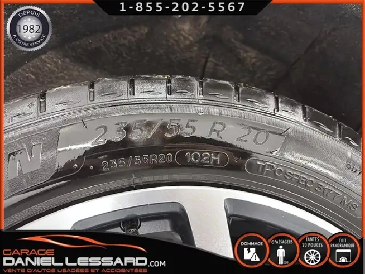 • Pneus P235/55R20 cote de vitesse H toutes saisons flanc noir (Peut être remplacé par des pneus de 21 po (R0V) lorsque les roues de 21 po en alliage à rayons multiples au fini usiné au diamant avec alvéoles peintes Androïde foncé (RUK) sont commandées.)