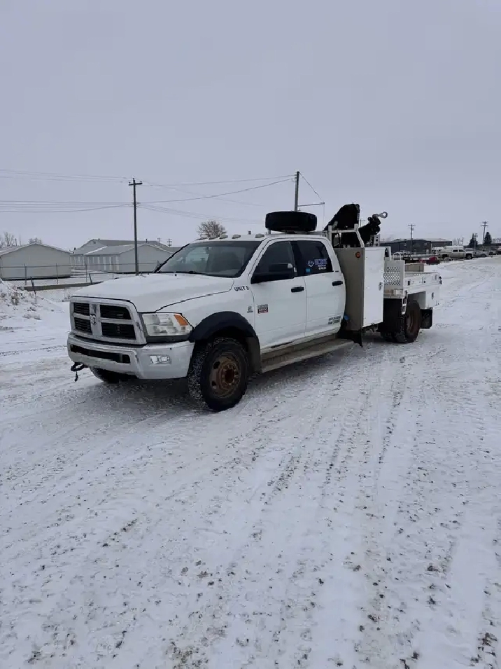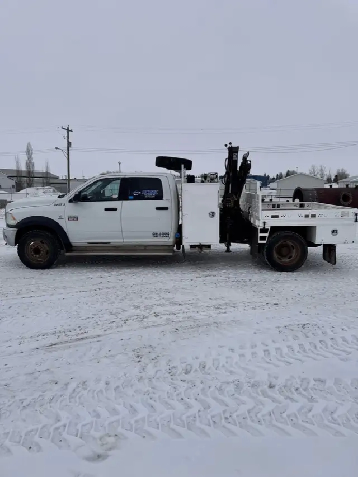 2012 Dodge crew cab 5500. Comes with Hiab 44 picker. The crane and cvip have just expired, but we are willing to have done if the new buyer needs. 6.7 diesel deleted and 40hp tune. Only 225,000 km. Would make a awesome farm truck. Call Lee 403-740-3040