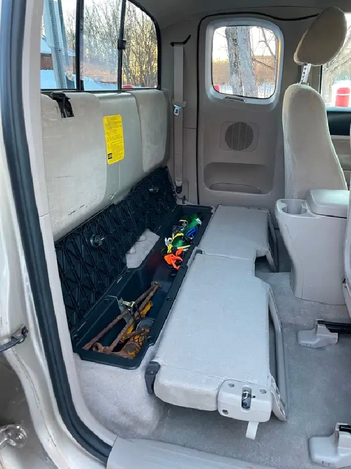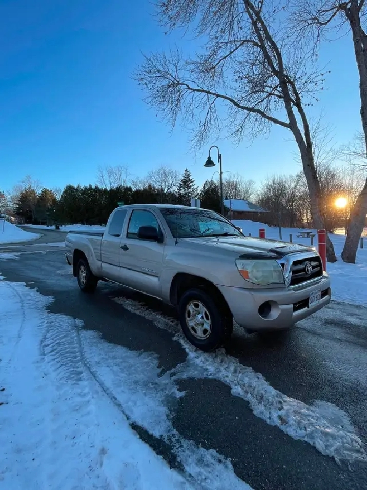 For Sale: Meticulously Maintained, Regularly Serviced, and Well Cared for 2005 Toyota Tacoma, Access Cab (2 Rear Jump Seats with two factory installed tools boxes under seats), 2 Wheel Drive, 4 litre, 4 Cylinder, 160 Horse Power, with Tonneau Cover (no holes or tears). Excellent Condition only 239,000kms. Includes the following: New MVI with two years remaining on the sticker (value $50.00) perfect condition. All service records included (value $500.00). Clean Car Fax Report (No Accidents, Insurance Claims, or Liens) (value $70.00). Cleaned and Detailed (value $200.00). Full Tank of Gas (value $100.00). We will pay Vehicle Transfer Fee (value $20.00). All recalls have been completed. Only two owners. Comes with original service manuals, two keys and fobs for quick locking and unlocking of the doors, tonneau cover for truck bed, plastic bed liner, winter and summer floor mats, spare wheel, jack, and tire iron, ratchet straps, bungie cords, two convex mirrors (to eliminate blind spots), and two phone/computer charging cables. Currently has winter wheels on it.