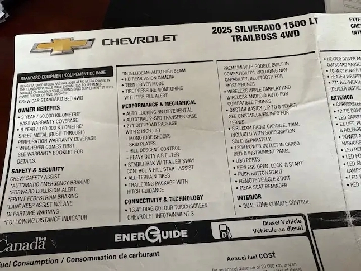 2025 Chev LT TRAIL BOSS 1/2 TON